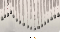 拍摄一段竖直弹簧振子运动的视频,然后采用Potplayer软件将视频连续截图,再将图片错开叠加,如图5所示,发现模拟得到的x-t图像并不是直线的,而更有点像正弦或余弦曲线。