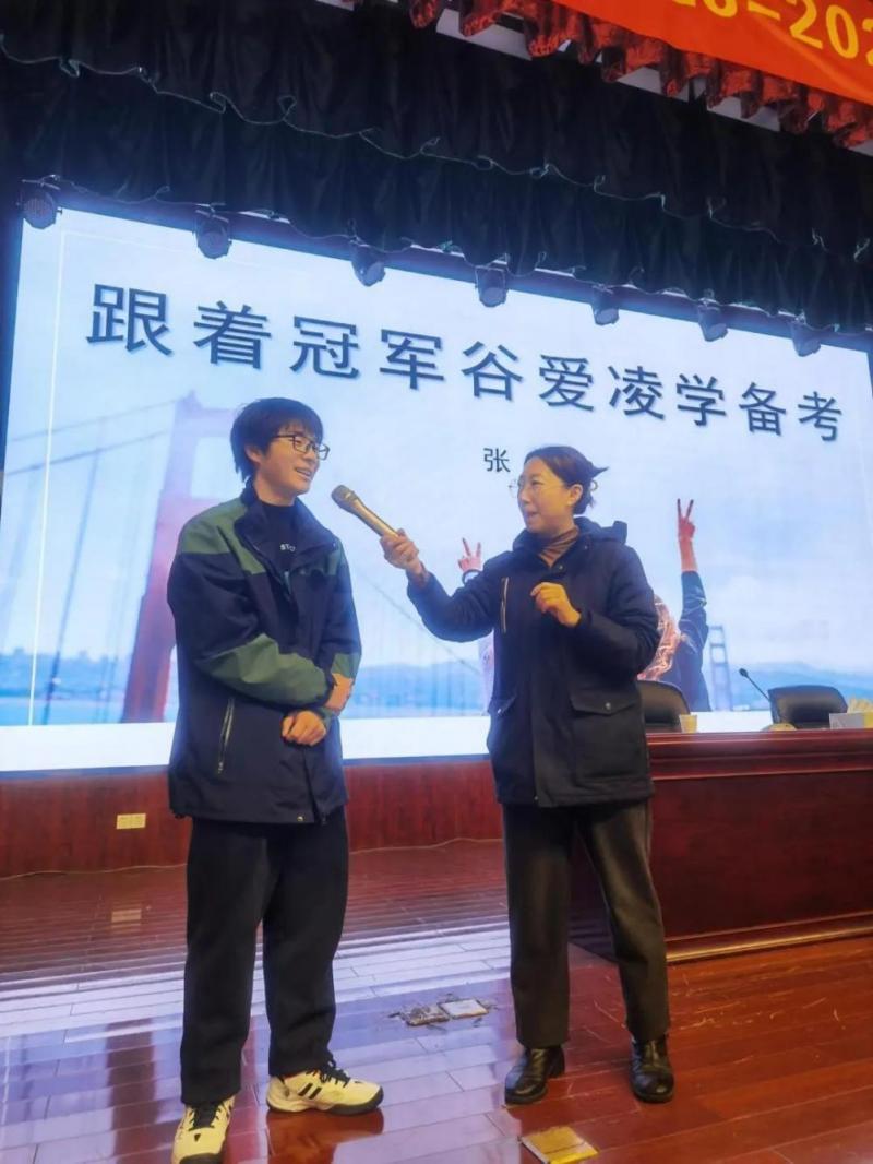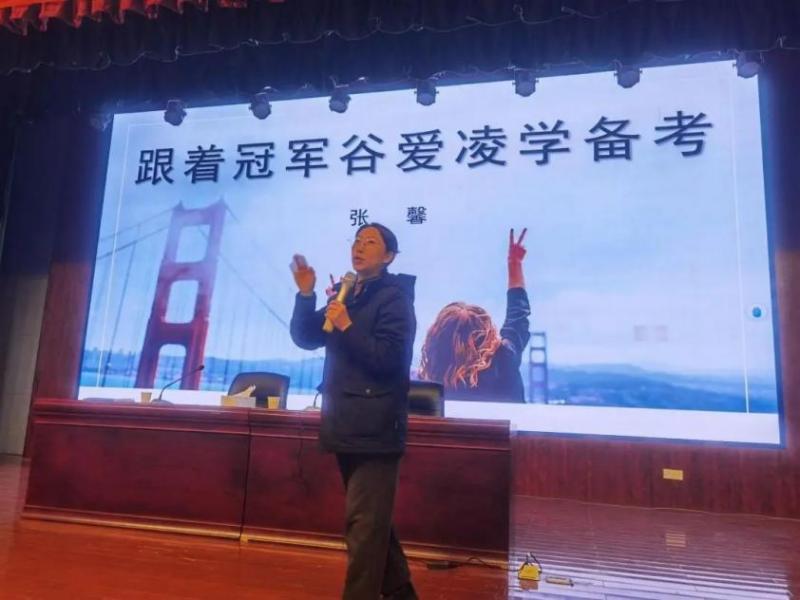 张馨老师首先分享了奥运冠军谷爱凌的文章《我承认,我爱上了恐惧》,通过谷爱凌大赛前调整心态战胜恐惧的案例,告诉同学们战胜临考前未知恐惧的方法之一就是将目标具象化。