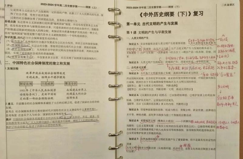 认真备课是搞好教学工作的基础,新老教师都不能上无准备的课,不开展无准备的教学活动。精心设计的教学环节、工整的书写、重点的红色标注……用心可见。