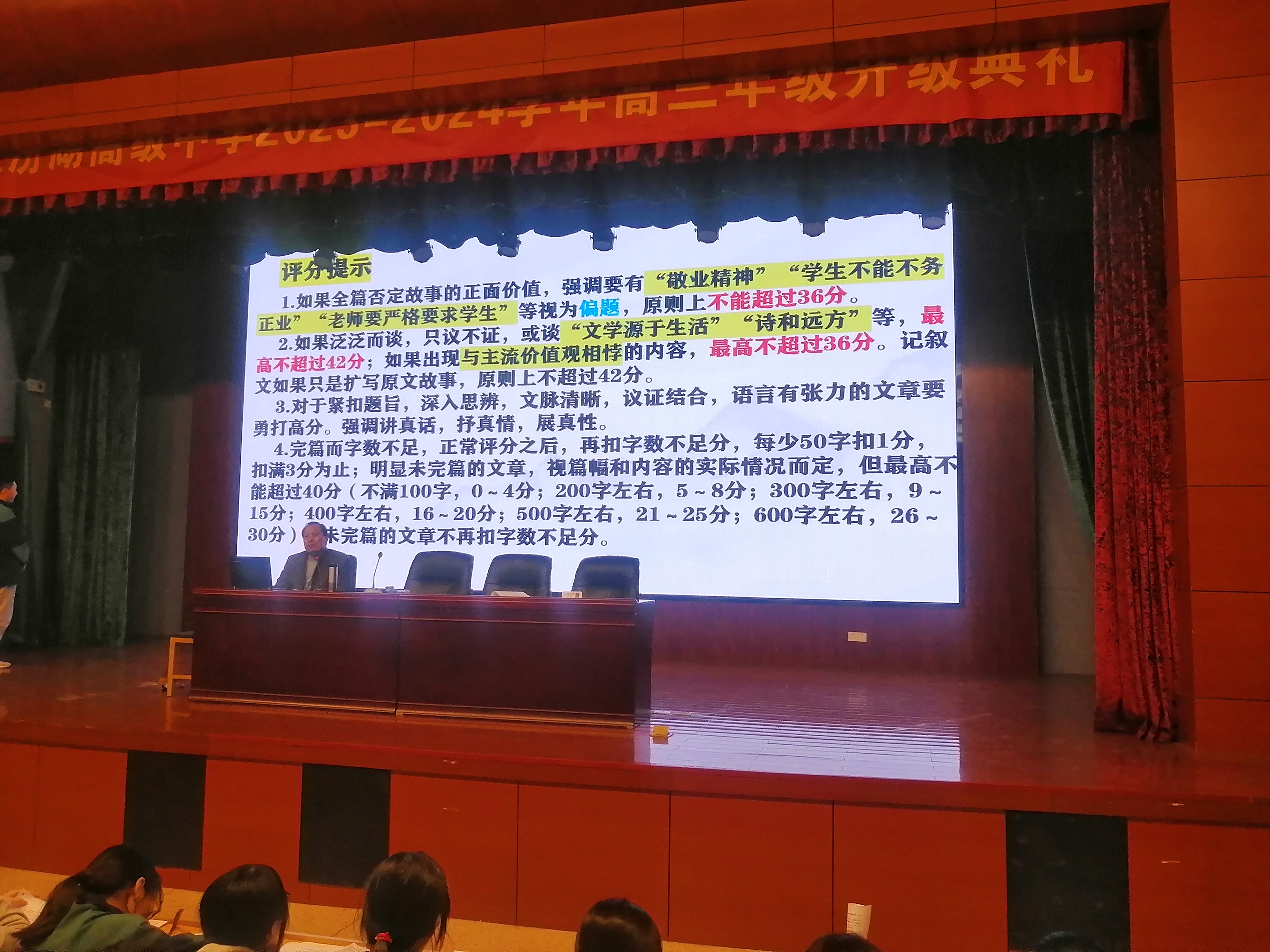 语文作文教学鼓励学生思考,拓展写作思维,顺乎人情,向阳成长。这次讲座既是一场视听盛宴,又是一次考前备考指导,对于提高我校的作文水平起到了极大的促进作用。相信与会的每一个成员都能够以此次讲座为契机,高考路上披荆斩棘、一往无前!