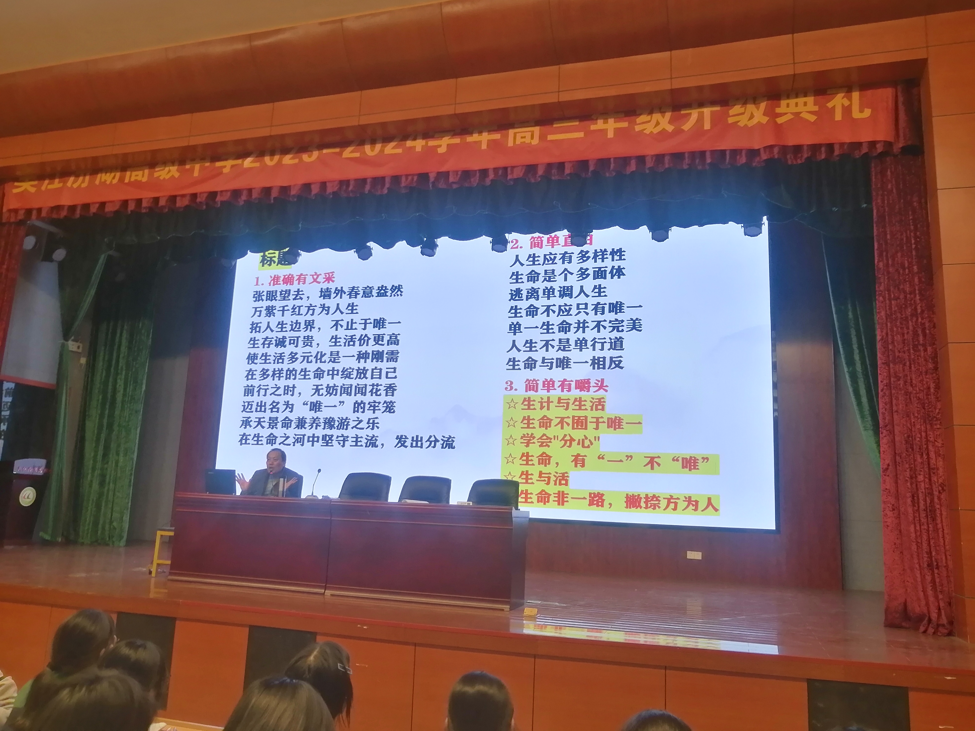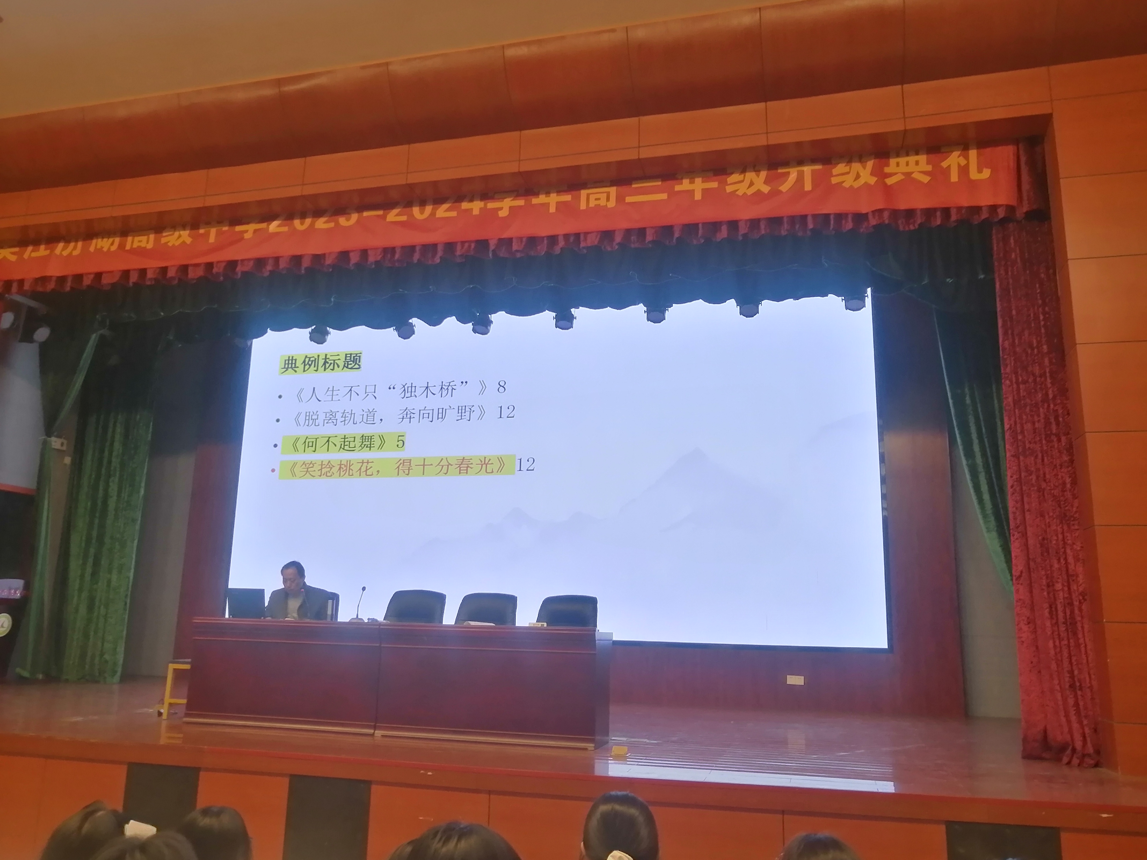 江南三月,莺飞草长,距离高考不足80天,为了更好地促进高三语文作文再上一个“新台阶”,我校在3月22日举行了高三作文指导讲座。讲座由语文组教研组长兼高三语文备课组长王帅老师主持。全体高三学生和语文老师聆听了讲座。