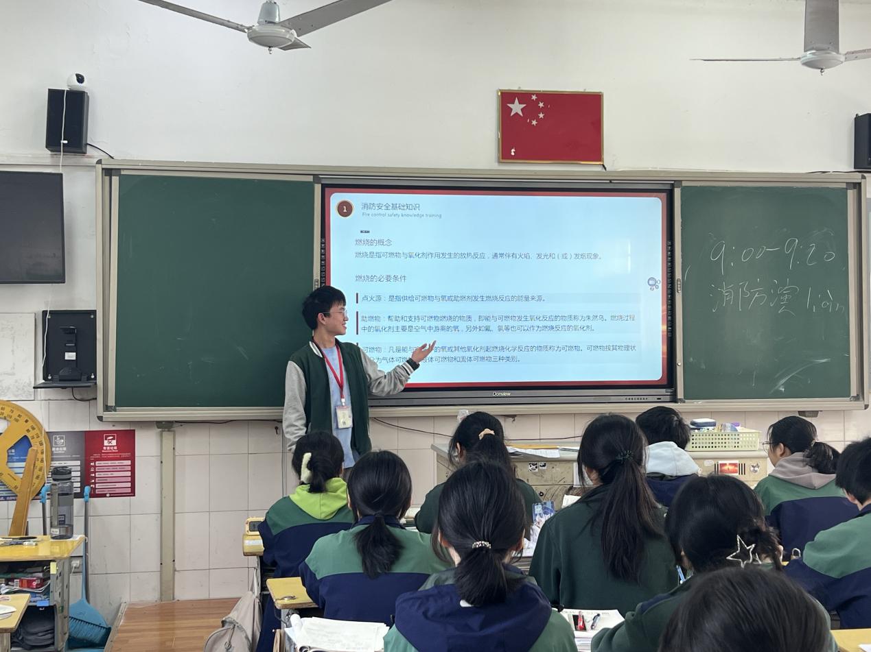 2024年4月1日,各班首先开展“消防安全知识培训”主题班会,班主任讲解消防安全知识,安排紧急疏散路线,提醒演习注意事项。同学们在班主任的组织下学习发生火灾如何正确逃生,普及火灾逃生自救知识。