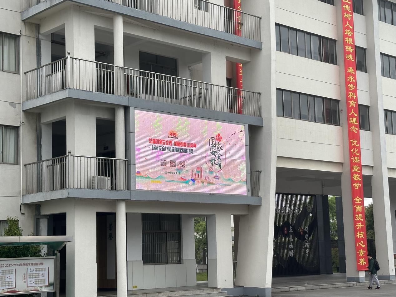 3、我校于“4·15”期间于校园公共电子显示屏播放国家安全宣传语、海报。