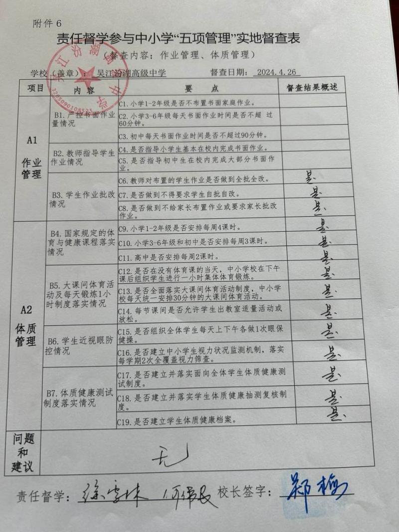 1.规定动作:每月的“心理健康教育”、五项管理、“双减”工作督导。其中“五项管理”重点督导“作业管理和体质管理”2个项目。