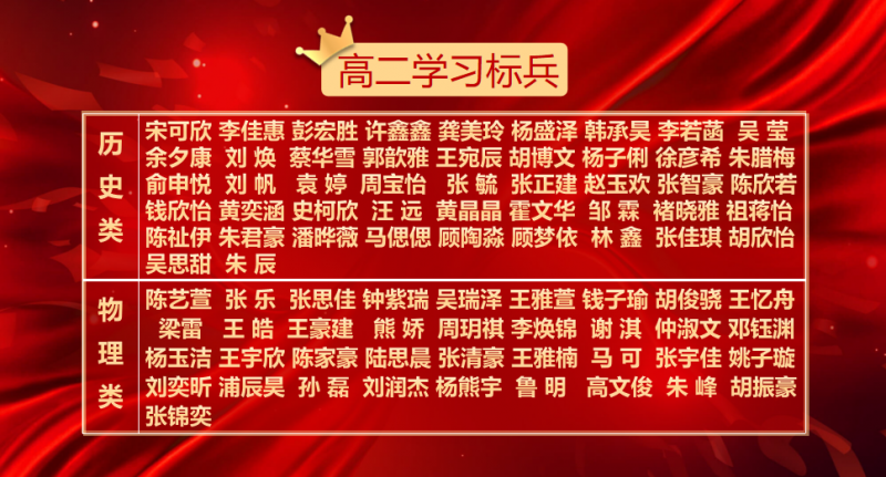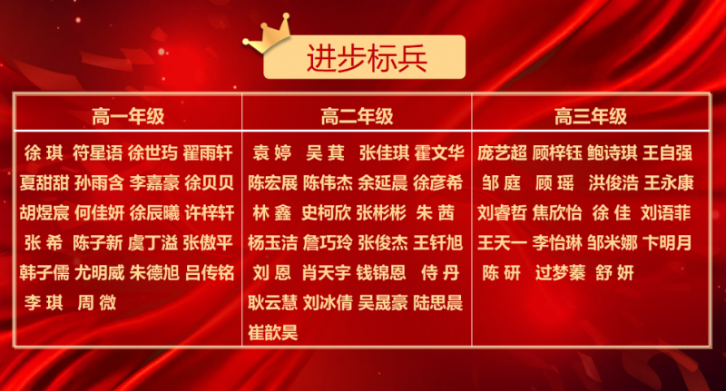 在本次考试中,涌现出一批全科学习、单科表现优秀的同学,分别被授予“学习标兵”、和“学科标兵”称号;一大批同学本学期进步明显,被授予“学习进步标兵”称号。