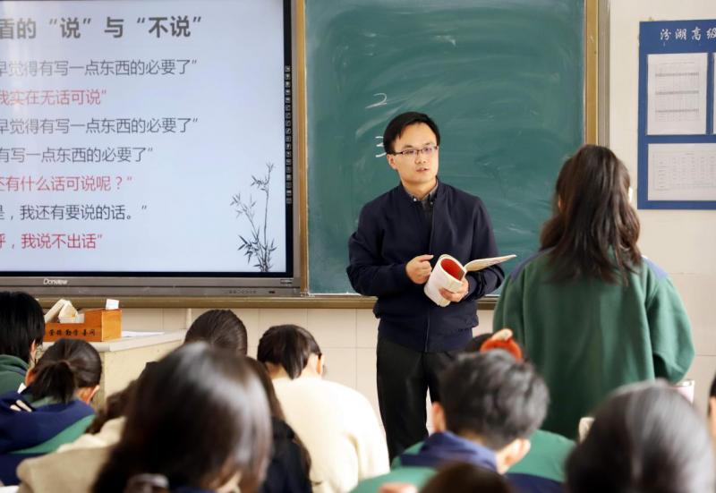 张华建老师执教《荷花淀》一文,把课堂放给学生。他从学生的预习质疑入手,带领学生研讨《荷花淀》纯美的诗意,学生们在老师的引导下深入文本,积极思考,主动表达,并在老师设计的“台阶”的引导下,逐渐走入更深刻的文本空间。课堂生动活泼,学生们的活动积极,在思维的碰撞中,闪亮着智慧的火花。