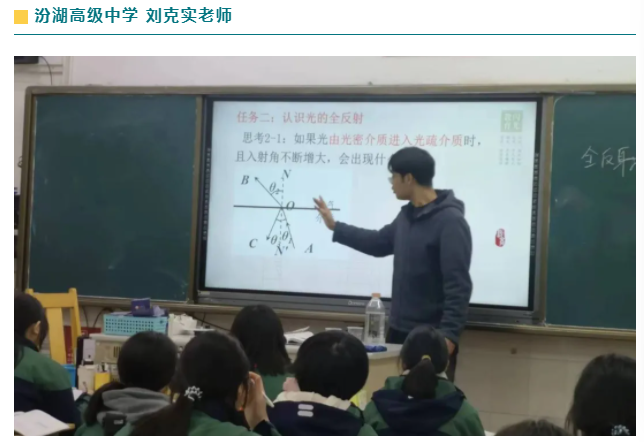 震泽中学范春阳老师点评了刘克实老师的课例。刘老师的课整体设计合理,教学方法得当,符合学生现有认知水平,学生参与度高。整节课的实验设计,选取了比较容易得到的生活中的小东西,而视觉感却很强,抓住学生眼球,激发了学生的兴趣。光的全反射实验中,通过角度变化去观测折射角的变化,结论都是由学生来回答,充分发挥了学生主体地位。整节课的学历案的任务安排合理,问题层层递进,符合学生学习的思维发展。
