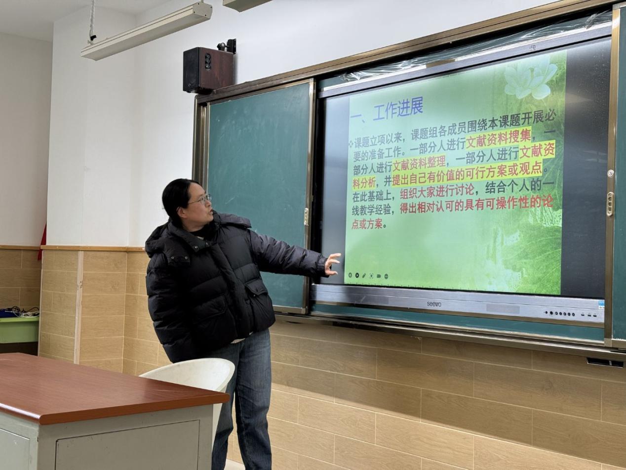 我校课题研讨活动被分配到高中1组,李悦老师分别从“工作进展”、“对课题核心概念的最新理解”、“重点研究内容”、“具体的研究方案”和“预期成果”等方面做了开题报告。