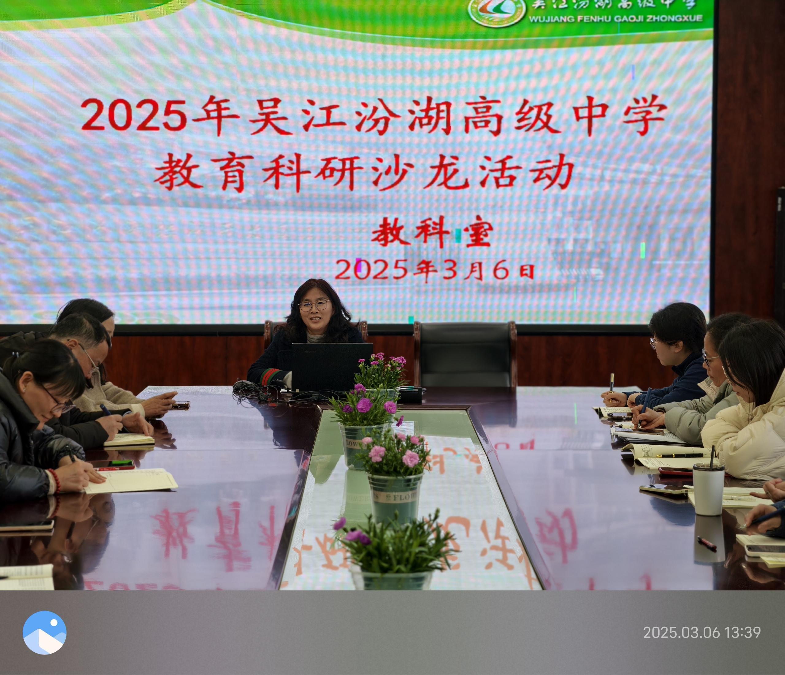 为了提升骨干教师专业素养和教育教学能力,汾湖高级中学教育科研培训活动暨青年教师专业成长沙龙分享会于2025年3月6日13时在行政楼一楼会议室进行了本学期第一次研讨活动。会议由教科室主任杨宏宇主持,部分学校领导以及青年骨干教师教师参会。特级教师王会英与正高级教师牛军锐担任导师,对此次教育科研培训活动进行了深入的指导。