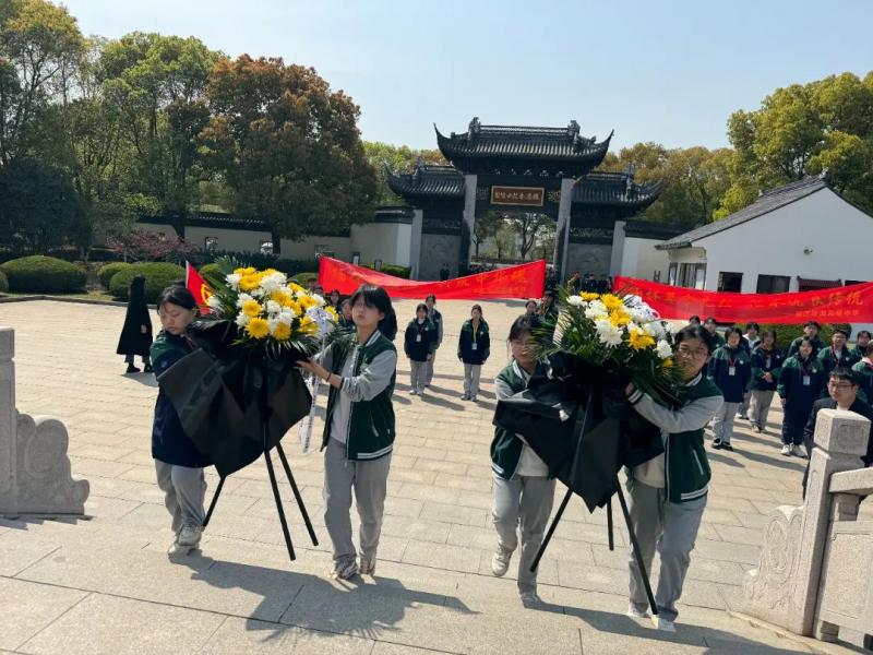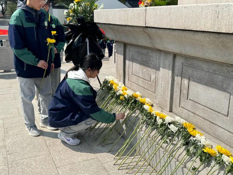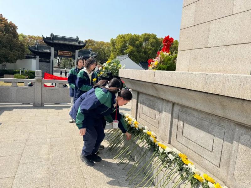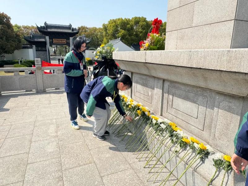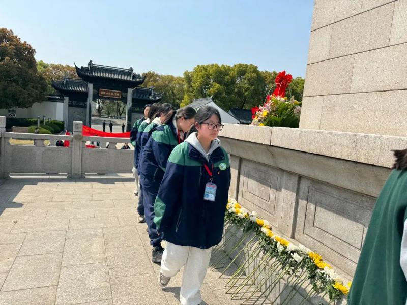 在烈士陵园,同学们铿锵有力的誓言,表达了同学们继承先烈遗志、传承红色基因,吾辈当自强的坚定决心。同学们向烈士陵园敬献了鲜花,以致敬烈士。