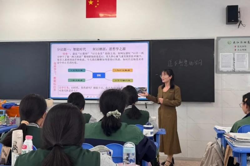 汾湖高中高慧老师以“人工智能时代的哲思”为总议题,分设子议题一:“智能时代何以栖居思哲学之源”;子议题二:“引领智能行稳致远思哲学之义”;子议题三:“借力智能碰撞火花焕哲学之新”。人工智能的议题设置切合了当今的社会热点,引领学生关注社会时政话题。在授课中,学生围绕人工智能使用中的问题,探究了哲学的相关知识内容,提升了学生自主建构知识的能力。