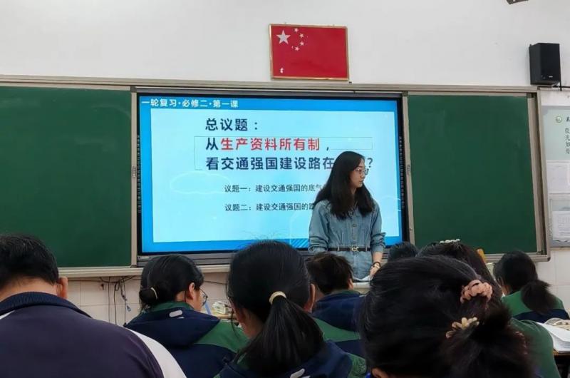 平望中学朱萌老师以“从生产资料所有制,看交通强国建设路在何方?”为总议题,分设子议题“建设交通强国底气何在?”“建设交通强国路在何方?”整节课设置了整本书和本课时知识结构的建构、考向研习,议题式复习,链接真题等几个环节,在议题探究中贯穿知识、互动真题。议题的选取、情境的设置注重贴近生活,让学生有话可说;注重综合性、时政性,表现出明确的高考指向和核心素养导向。学生反映良好,加深了学生对知识的理解和知识结构的建构。