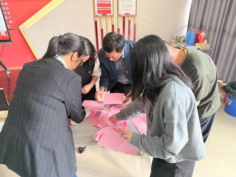 在随后进行的选举环节中,现场气氛庄重而热烈。在总监票人、监票人的监督下,工作人员当众检查票箱、清点并分发选票。与会党员本着对组织高度负责的态度,慎重地投下了自己庄严而神圣的一票。经过严格的投票、监票和计票程序,大会以无记名投票方式,差额选举产生了由五名同志组成的新一届总支部委员会。