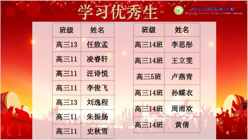 为了树立榜样、促进进步,学校对高三期中考试年级前列的同学们进行了表彰,夏正勇主任宣读了获表彰同学名单。