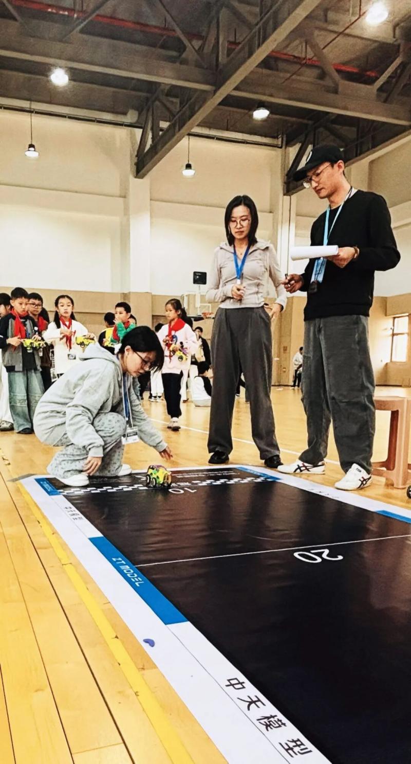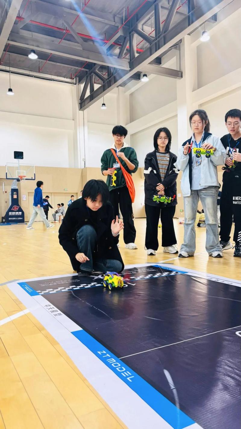 在车辆模型赛区,引擎的嗡鸣声此起彼伏,这里是速度与控制的战场。我校选手从组装到竞赛有条不紊。这项比赛不仅考验着选手的反应速度和手眼协调能力,更是对心理素质的严峻挑战。
