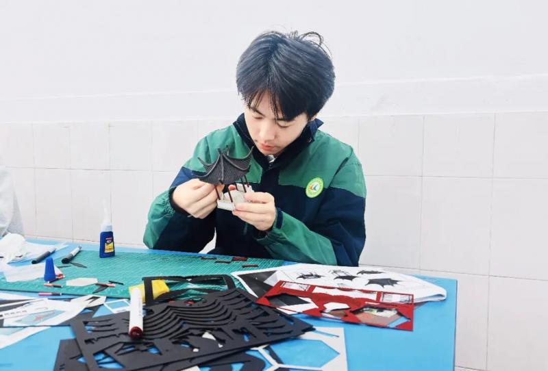 队员们反复调试假山比例,力求自然;粘接亭台榫卯,追求稳固。胶痕留在指尖,专注刻在眼底,对完美的追求从未停歇。